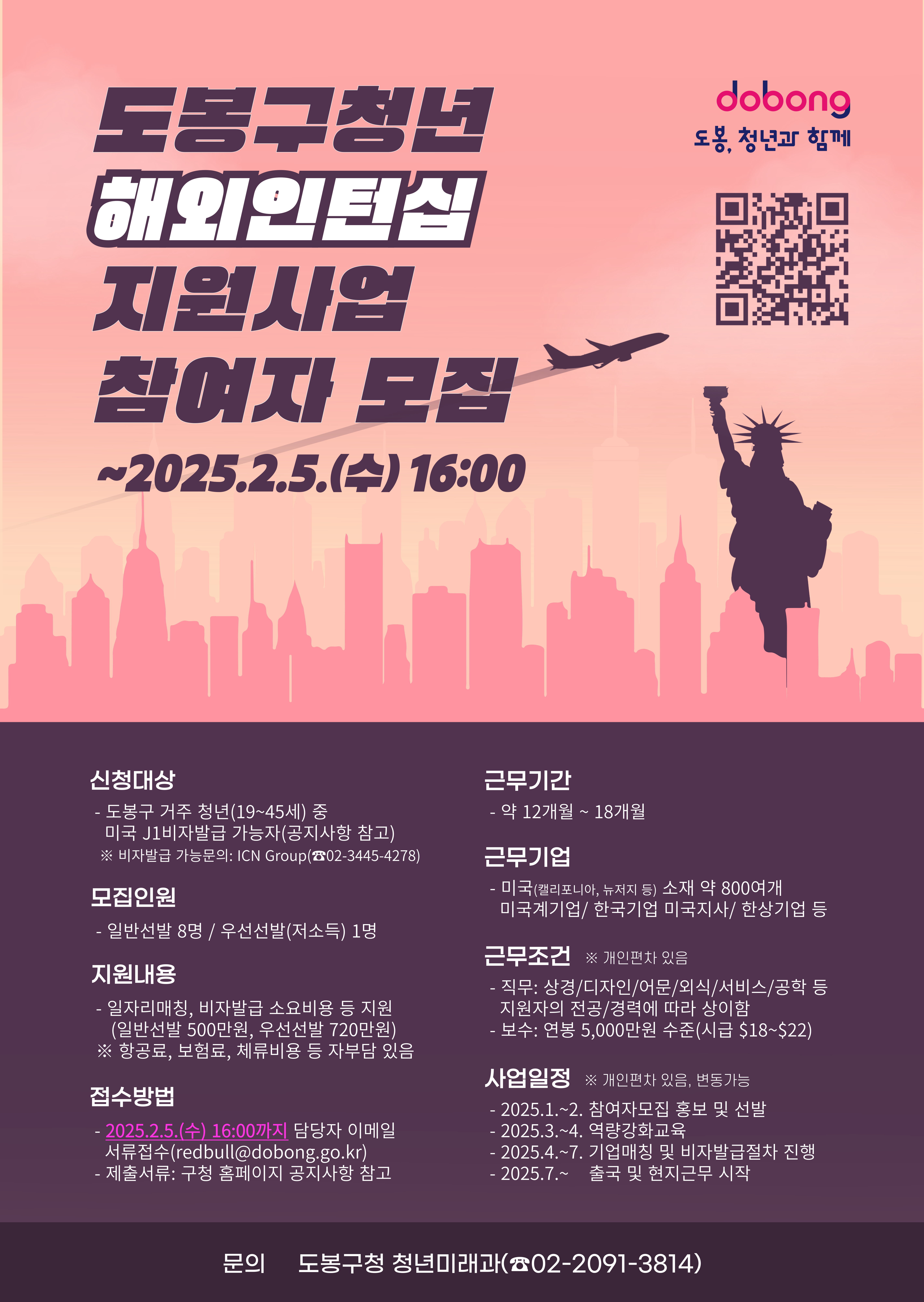 상명 [진로취업] 2025 도봉청년 해외인턴십 지원사업 참여자 모집 -