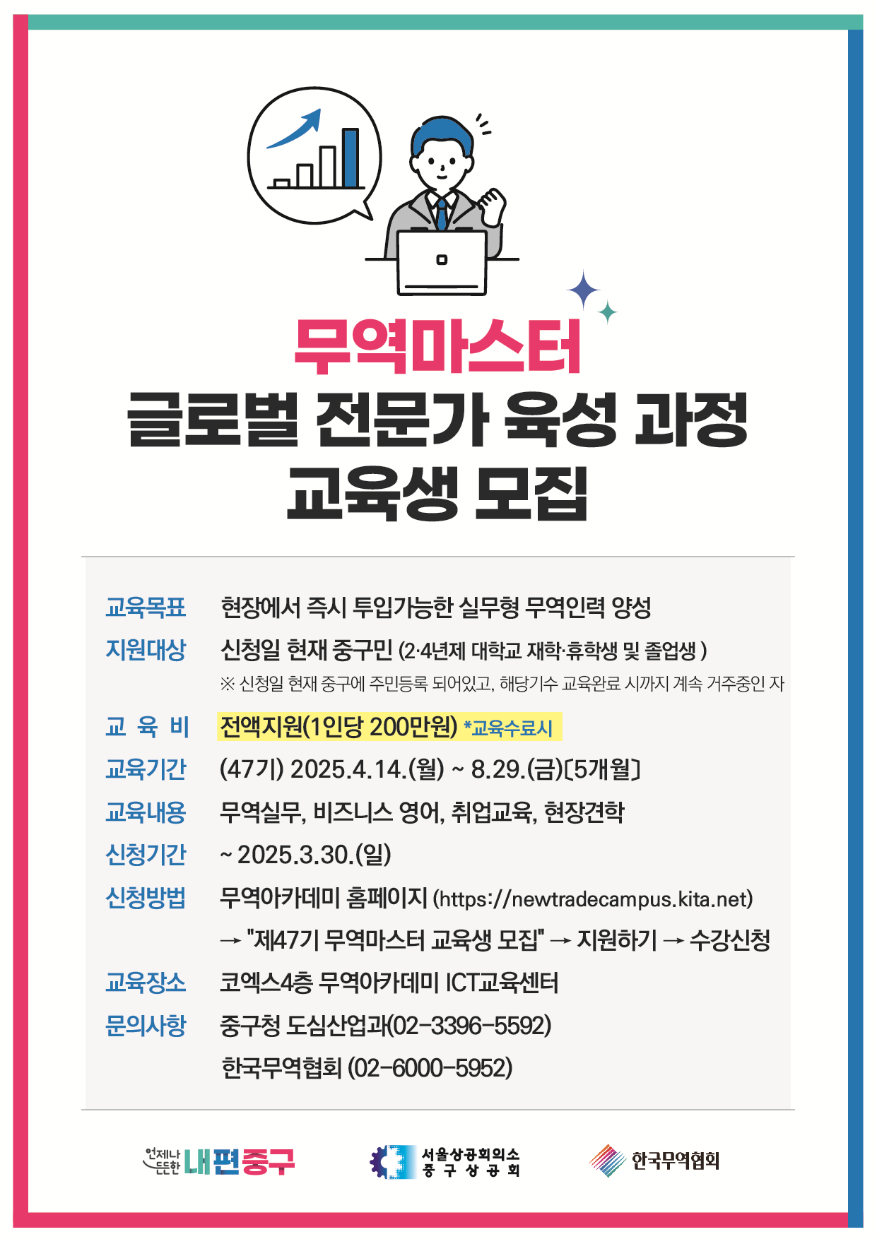 상명 [진로취업] 무역마스터 글로벌 전문가 육성과정 교육생 모집 홍보 안내 -